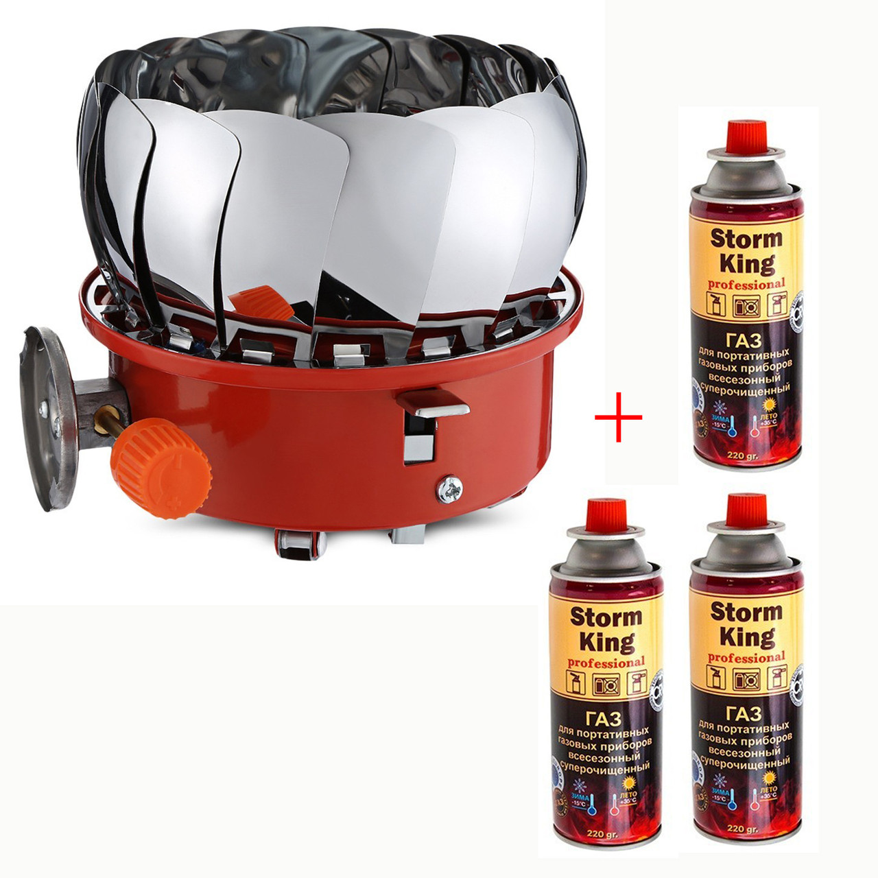 Виготовлена з неіржавкої сталі високої якості, міцна та стійка до високих температур. Вітрозахист у формі лотоса може відкриватися й відтягуватися. Спеціальний дизайн робить його вітрозахисним, а тепло зібраним. Чудова теплоефективність і сильне тепловіддання. Вага: 600 грамів, компактна та зручна у використанні. Вбудована електрична система запалювання й регулювальний клапан для палива створює точний контроль інтенсивності розміру полум'я. Задовольняє потреби кип'ятіння, смаження й тушкування. Сумісна з довгим бутановим газовим балоном (до комплекту не входить). Рекомендується зберігати в мішку, легко носити із собою.
